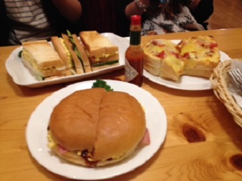 奥から、ミックストースト・たっぷり卵のピザトースト・エッグパンズです。